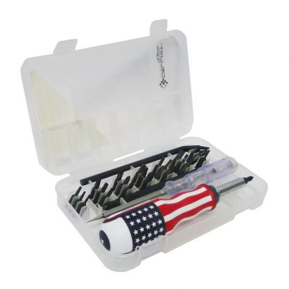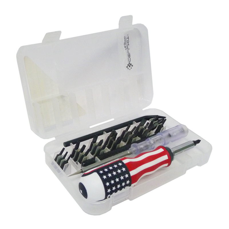 Steel S2 (S2) and handle made of PP + TPR which is anti-slip (with American Flag Design), safe and comfortable in your hand. Plastic packing is made of high quality PE Original material and does not break easily. The screwdriver handle is also equipped with a place for the screwdriver blade at the top of the screwdriver handle, so that the screwdriver blade can be installed above the screwdriver handle to make it easier to perform service.